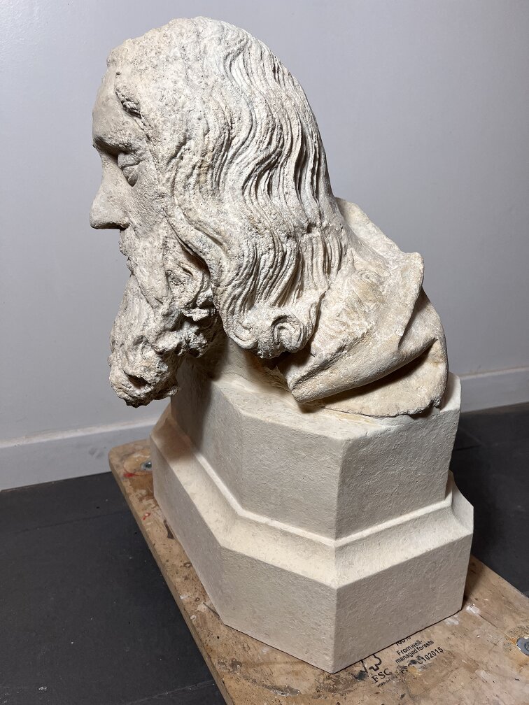 La restauration de la tête du Nicodème de La Roche l'Abeille